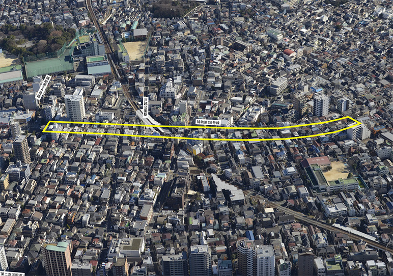 本路線は、戸越公園駅に近接する商店街を縦断する計画となっており、地元ではまちづくり協議会が設立されるなどの取組が進んでおり、その取組と連携した道路整備が必要となっています。