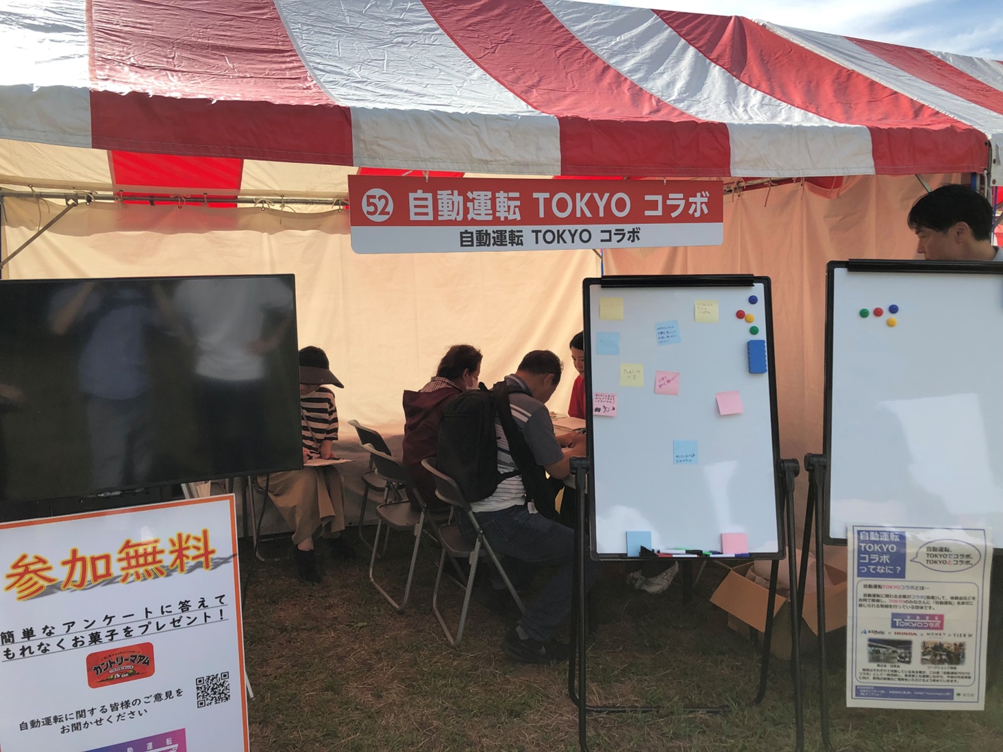木場公園にて実施した第42回江東区民まつり中央まつりにおいて、自動運転の仕組みをわかりやすく説明したパネル・動画の展示を行うとともに、大人から子供まで幅広い年代を対象とした自動運転に関するアンケートを実施