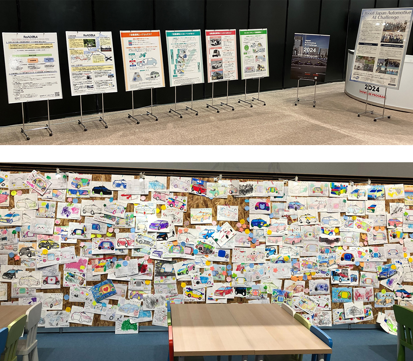 有明アリーナにて実施したSusHi Tech Tokyo 2024において、自動走行車の展示を行うとともに、自動運転の仕組みをわかりやすく説明したパネルの展示や自動運転教室、子供向けのタブレットクイズ・塗り絵体験を実施