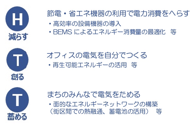 東京都で取り組んでいる、都市づくりにおける~HTT<電力をH減らすT創るT蓄める>~事例について紹介します。