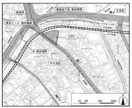 加えて、建物の共同化による目白通りが担う常時・非常時における首都機能の確保、及び災害発生時における情報発信等の拠点機能を整備、周辺地域と連続した緑地空間を形成、さらには駅前に必要な子育て支援施設等の必要機能の創出、周辺のJR飯田橋駅整備への協力を行う。
