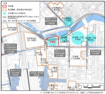 このため、土地の合理的かつ健全な高度利用と都市機能の更新を図るとともに、首都高速道路の地下化の実現に向けた協力を行い、国際的な金融機能や高度な業務支援機能等の一体整備による複合機能集積地の形成、日本橋川沿いの連続的な水辺空間や歩行者基盤の整備等を通じて、国際競争力の強化を行うものである。
