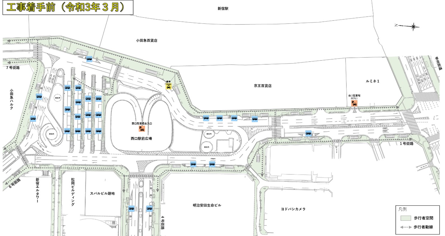 1.西口駅前広場(地上部)の道路と歩行者空間の平面配置